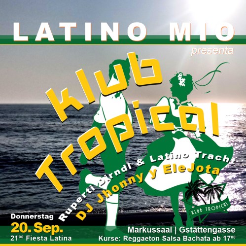 Der September im Klub Tropical bringt diesmal ein Special zum Thema Dirndl und Tracht. Genau rechtzeitig zur Eröffnung des Rupertikirtags öffnen wir wieder die Pforten bei Latino Mio im Markussaal/Gstättengasse, gleich hinter dem Haus der Natur.