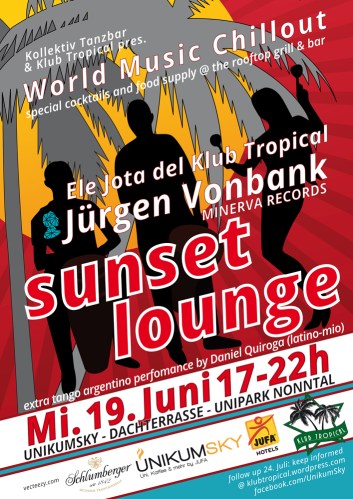 Lass Dir also ein Lächeln ins Gesicht zaubern und Deine Beine mittänzeln, ob frei oder im Paartanz. Die Sunset Lounge am Mittwoch Nachmittag bis zum Sonnenuntergang birgt Sommerfeeling von der besten Seite, dafür sorgt auch die immer gast-freundliche und liebevolle UnikumSky-Crew, die uns mit Drinks und leckerem Essen versorgt. Und das beste dabei ist, der nächste Tag ist Feiertag …